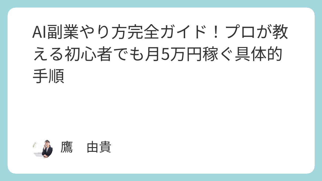 AI副業おすすめ12選!未経験でも月5万円稼ぐ方法と始め方を徹底解説 –
